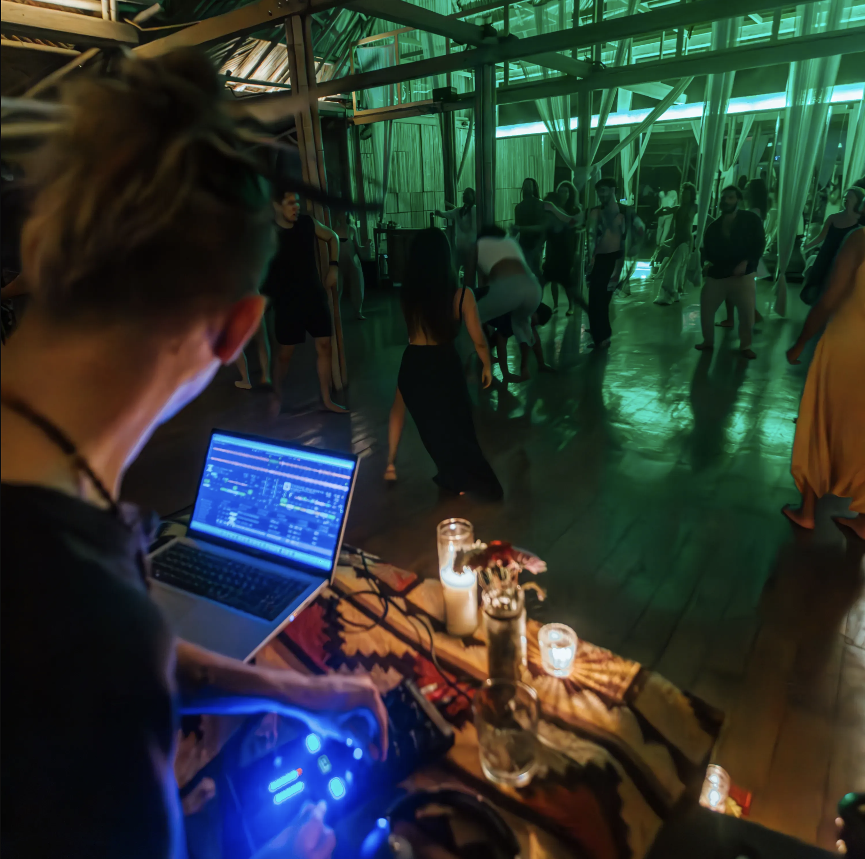 Rather than simply playing a DJ set, I guide a 2-4 hour immersive journey that begins with a contemplative introduction—including a heart-opening cacao ceremony and intention setting—and concludes with a guided closing for meaningful integration. This creates a safe, intentional space, fostering profound and transformative processes within a supportive environment.